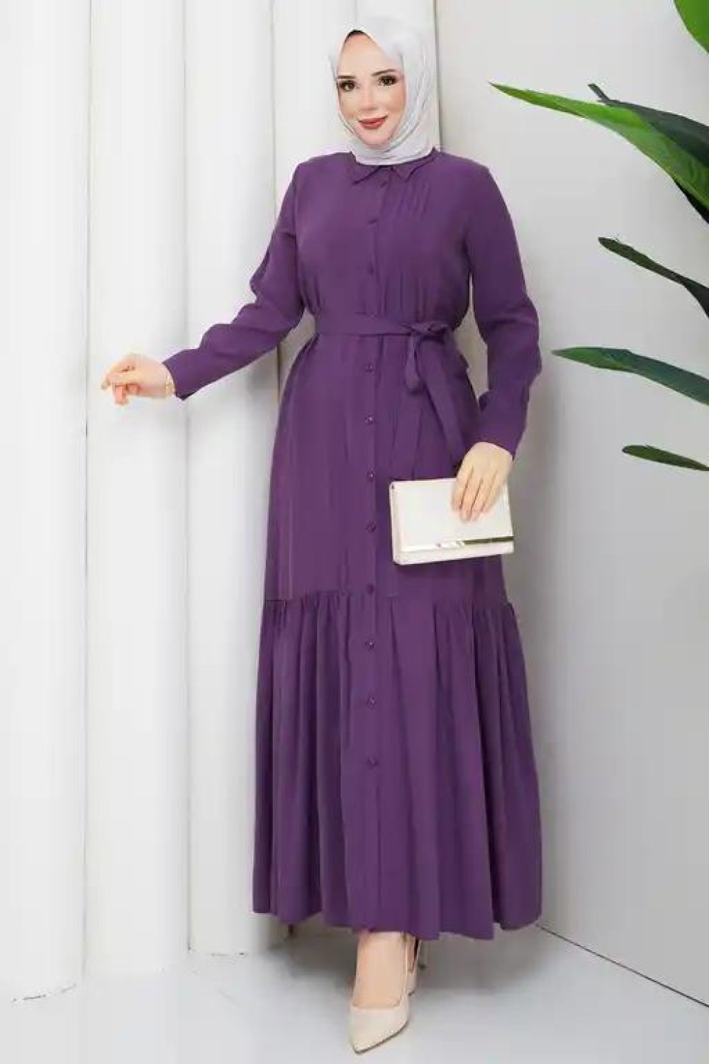 Aşkın tesettür elbise Mor