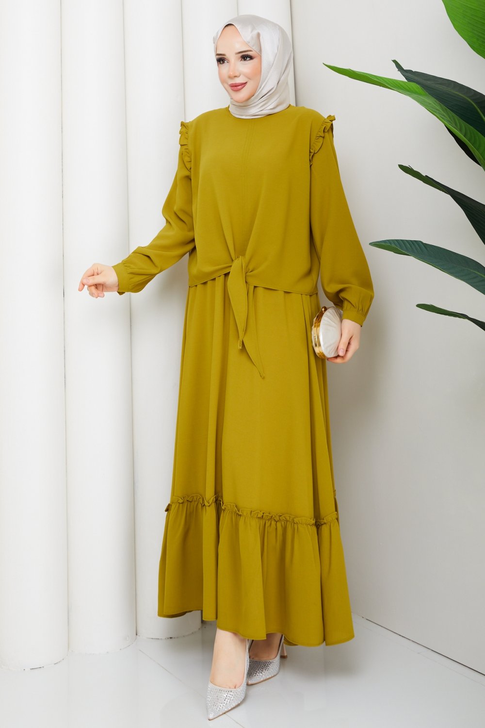 Diva linda etekli takım Hardal Sarısı